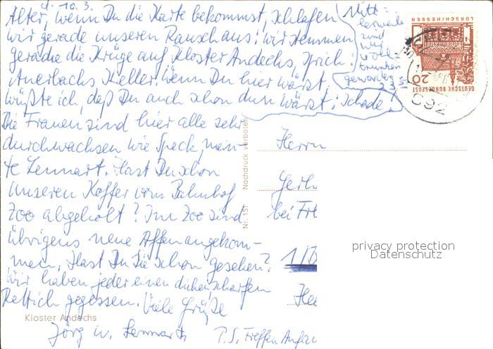 72208684 alte Postkarte Kloster Andechs postalisch gelaufen Erhaltung siehe scans KatCode: 11110009188117