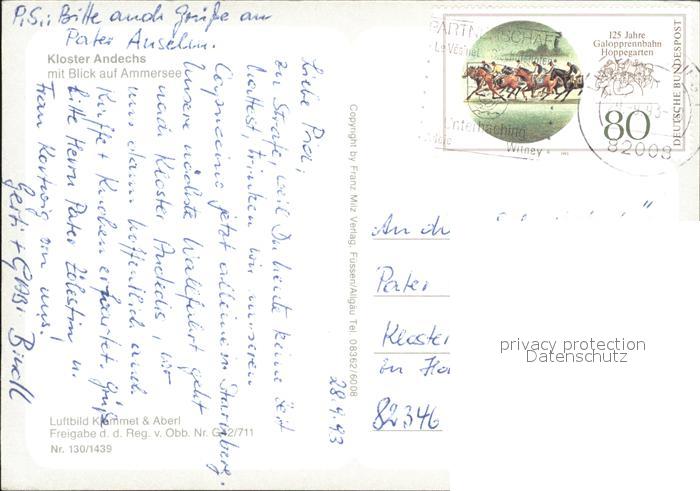 71859887 alte Postkarte Kloster Andechs Ammersee Fliegeraufnahme postalisch gelaufen Erhaltung siehe scans KatCode: 11110009188117