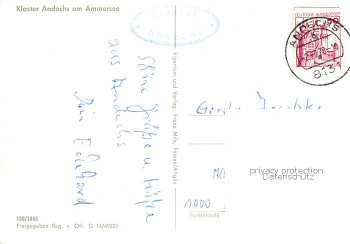 73540339 alte Postkarte Kloster Andechs Fliegeraufnahme am Ammersee postalisch gelaufen Erhaltung siehe scans [LiesaD40] KatCode: 11110009188117