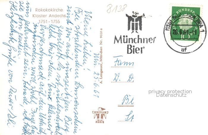 73316575 alte Postkarte Kloster Andechs Rokokokirche postalisch gelaufen Erhaltung siehe scans [KathaD81] KatCode: 11110009188117