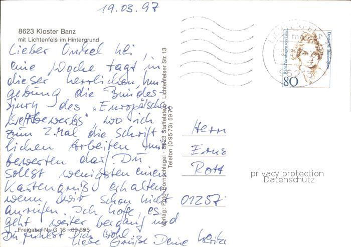 72369886 alte Postkarte Kloster Banz mit Lichtenfels Fliegeraufnahme postalisch gelaufen Erhaltung siehe scans KatCode: 11110009478165