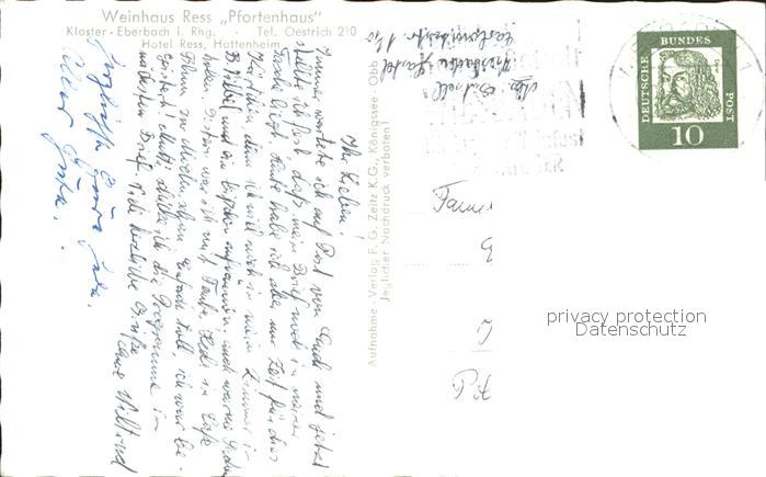 72094017 alte Postkarte Kloster Eberbach postalisch gelaufen Erhaltung siehe scans KatCode: 11110006439003