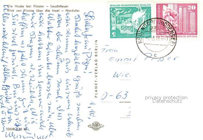 73211219 alte Postkarte Kloster Hiddensee Die Hucke Kueste Leuchtfeuer Nordufer postalisch gelaufen Erhaltung siehe scans [FriedD77] KatCode: 11110013061017