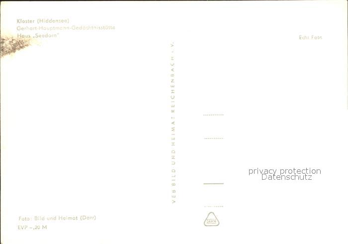 72336887 Kloster Hiddensee Gerhart Hauptann Gedaechtnisstaette Haus Seedorn postalisch nicht gelaufen Erhaltung siehe scans KatCode: 11110013061017