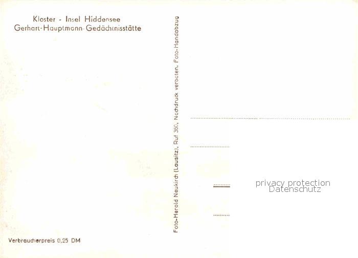 72727516 Kloster Hiddensee Gerhart Hauptmann Gedaechtnisstaette postalisch nicht gelaufen Erhaltung siehe scans [FriedD77] KatCode: 11110013061017