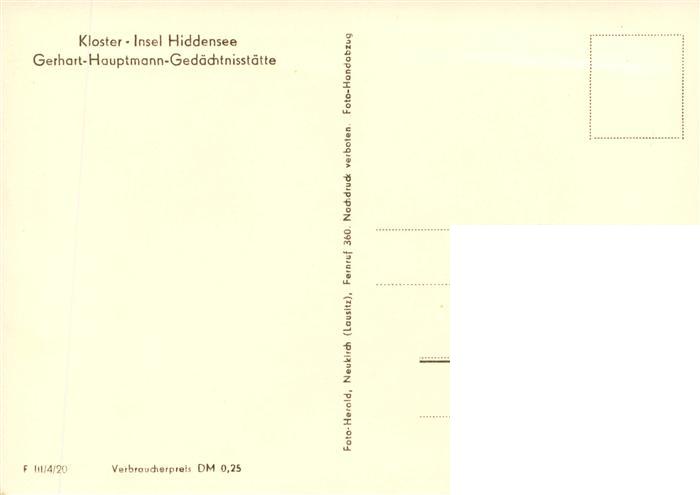 73894033 Kloster Hiddensee Gerhart Hauptmann Gedaechtnisstaette postalisch nicht gelaufen Erhaltung siehe scans [FriedD77] KatCode: 11110013061017
