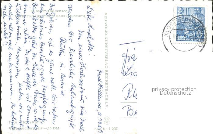 71999619 alte Postkarte Kloster Hiddensee Gerhart Hauptmann Haus postalisch gelaufen Erhaltung siehe scans KatCode: 11110013061017