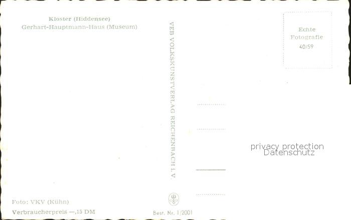 72063327 Kloster Hiddensee Gerhart Hauptmann Haus Museum postalisch nicht gelaufen Erhaltung siehe scans KatCode: 11110013061017