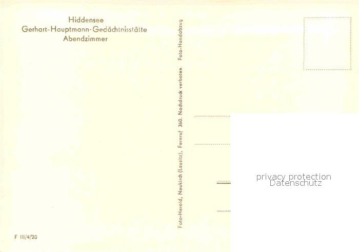72636866 Kloster Hiddensee Gerthart Hauptmann Gedaechtnisstaette Abendzimmer postalisch nicht gelaufen Erhaltung siehe scans [FriedD77] KatCode: 11110013061017