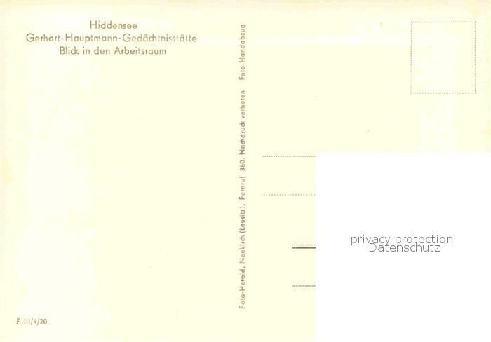 72636867 Kloster Hiddensee Gerthart Hauptmann Gedaechtnisstaette Arbeitsraum postalisch nicht gelaufen Erhaltung siehe scans [FriedD77] KatCode: 11110013061017
