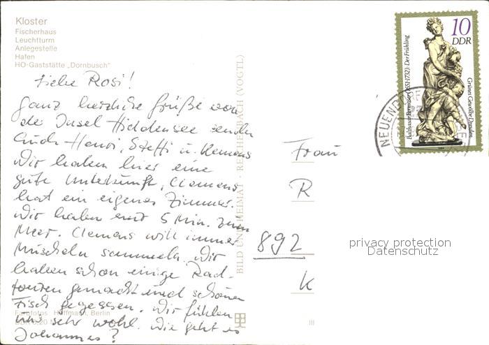 72126814 alte Postkarte Kloster Hiddensee Hafen Leuchtturm Fischerhaus Restaurant Dornbusch postalisch gelaufen Erhaltung siehe scans KatCode: 11110013061017