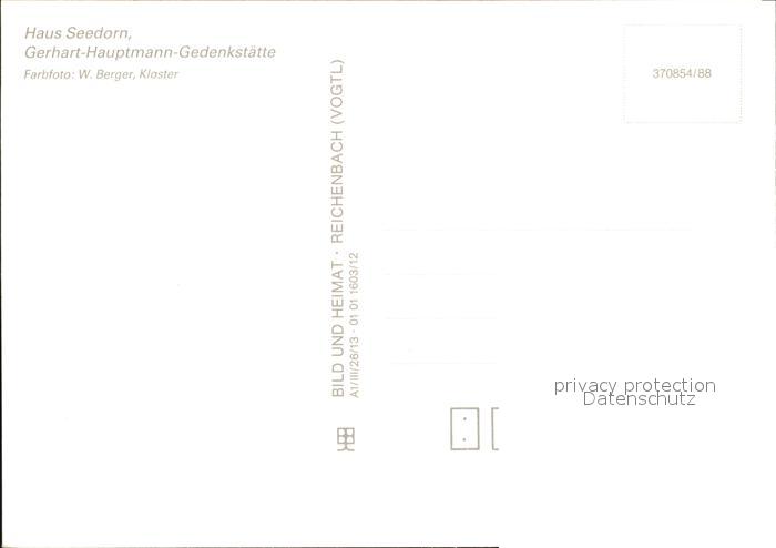 72585774 Kloster Hiddensee Haus Seedorn Gerhard Hauptmann Gedenkstaette postalisch nicht gelaufen Erhaltung siehe scans [LiesaD40] KatCode: 11110013061017