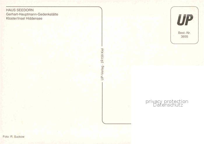 72825084 Kloster Hiddensee Haus Seedorn Gerhart-Hauptmann-Gedenkstaette postalisch nicht gelaufen Erhaltung siehe scans [LiesaD40] KatCode: 11110013061017