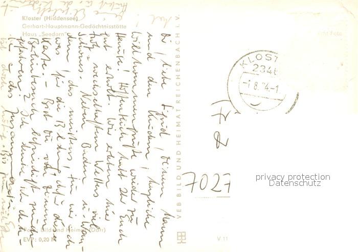 73071618 alte Postkarte Kloster Hiddensee Haus Seedorn postalisch gelaufen Erhaltung siehe scans [WerneD78] KatCode: 11110013061017