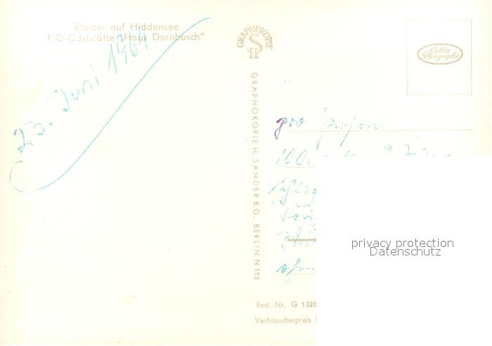 73544191 Kloster Hiddensee HO Gaststaette Haus Dornbusch postalisch nicht gelaufen Erhaltung siehe scans [FriedD77] KatCode: 11110013061017