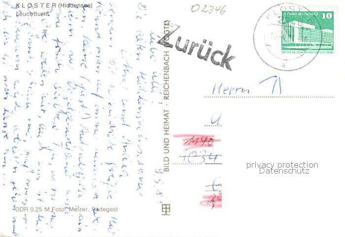 72937451 alte Postkarte Kloster Hiddensee Leuchtturm postalisch gelaufen Erhaltung siehe scans [FriedD77] KatCode: 11110013061017