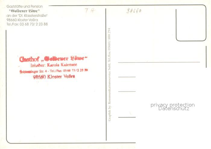 73643070 Kloster Vessra Gaststaette Pension Goldener Loewe Ferienwohnungen Fachwerkhaus postalisch nicht gelaufen Erhaltung siehe scans [FriedD77] KatCode: 11110016069025