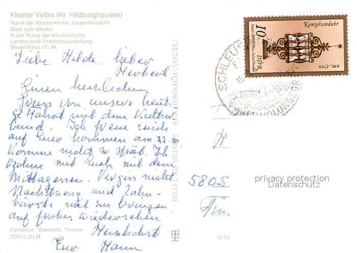 72962159 alte Postkarte Kloster Vessra Ruine Klosterkirche Landtechnik-Freilichtausstellung Bauernhaus postalisch gelaufen Erhaltung siehe scans [PaolaD17] KatCode: 11110016069025