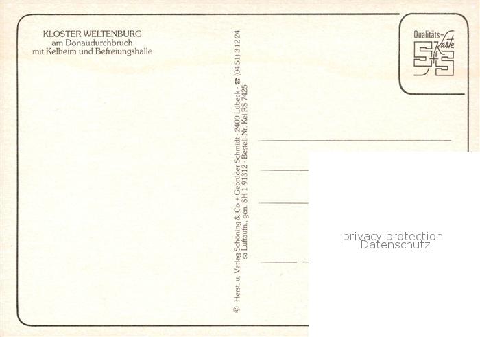 73540338 Kloster Weltenburg Fliegeraufnahme Donaudurchbruch mit Kehlheim und Befreiungshalle postalisch nicht gelaufen Erhaltung siehe scans [LiesaD40] KatCode: 11110009273137