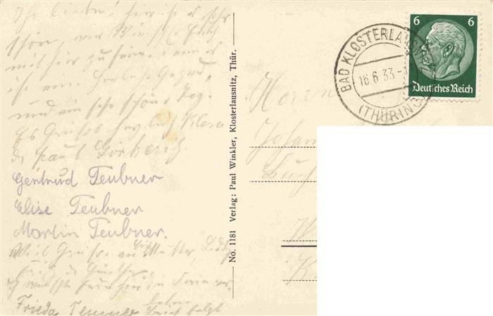 73971591 alte Postkarte Klosterlausnitz Bad Thueringen Erholungsheim Klosterwald postalisch gelaufen Erhaltung siehe scans [FriedD77] KatCode: 11110016074003