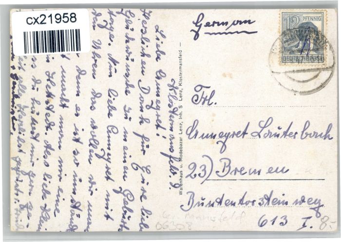30740345 alte Postkarte Klostermansfeld Chaussestrasse postalisch gelaufen KatCode: 11110015087260