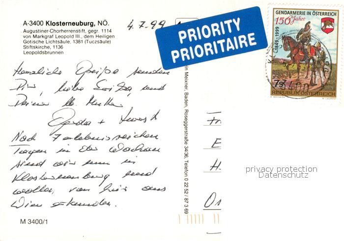 73269174 alte Postkarte Klosterneuburg Augustiner Chorherrenstift postalisch gelaufen Erhaltung siehe scans [KathaD81] KatCode: 11390126032408