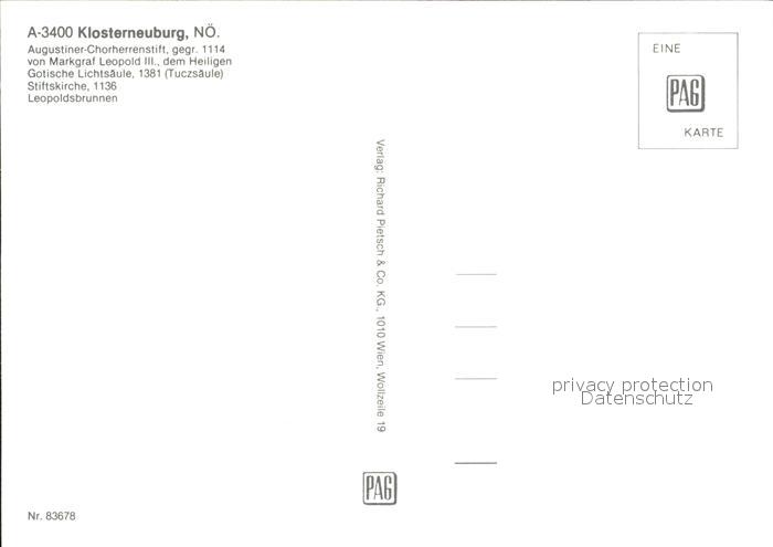 72354613 Klosterneuburg Panorama Augustiner Chorherrenstift Got Lichtsaeule Stiftskirche Leopoldsbrunnen postalisch nicht gelaufen Erhaltung siehe scans KatCode: 11390126032408