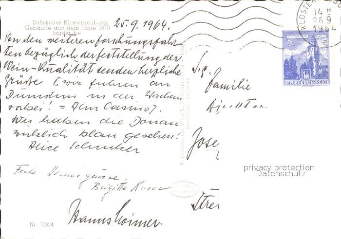 72217896 alte Postkarte Klosterneuburg Stiftskeller postalisch gelaufen Erhaltung siehe scans KatCode: 11390126032408