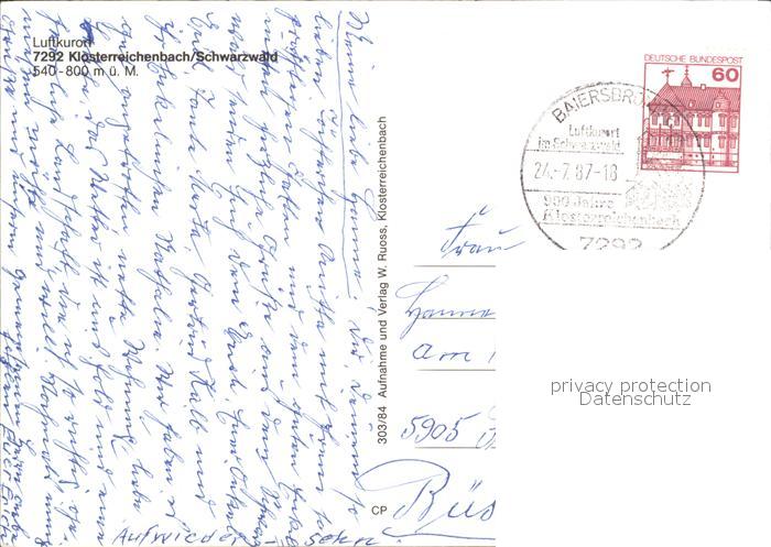 72507716 alte Postkarte Klosterreichenbach postalisch gelaufen Erhaltung siehe scans KatCode: 11110008237004