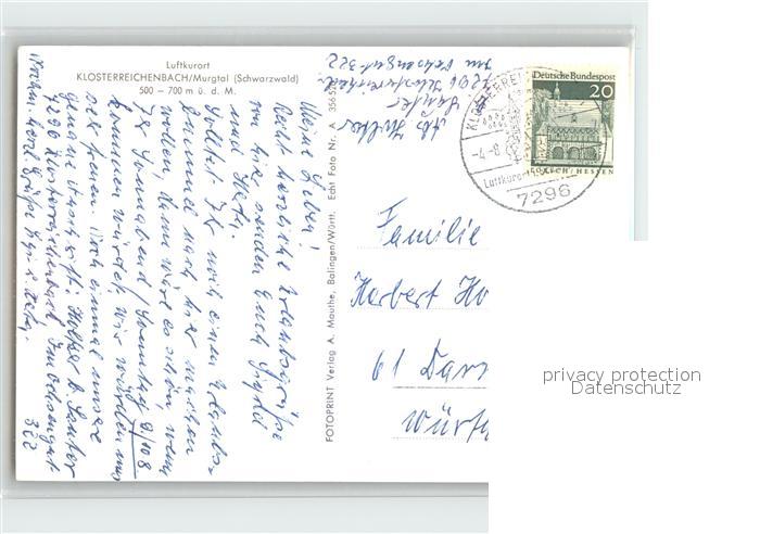 72219852 alte Postkarte Klosterreichenbach postalisch gelaufen Erhaltung siehe scans KatCode: 11110008237004