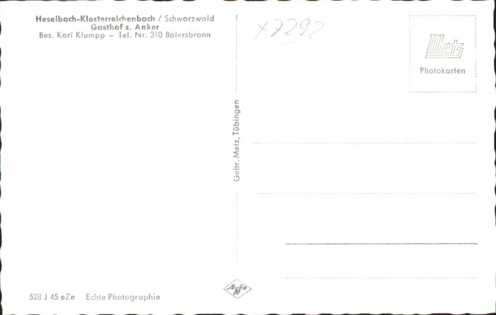 40760486 Klosterreichenbach Baiersbronn BW Gasthof Anker postalisch nicht gelaufen Alte Ansichtskarte Postkarte Katcode 11110008237004