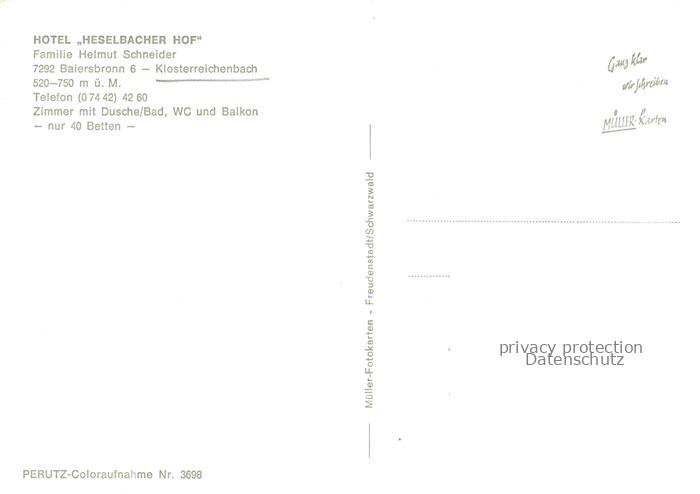 74111014 Klosterreichenbach Baiersbronn BW Hotel Heselbacher Hof Gastraeume Park postalisch nicht gelaufen Erhaltung siehe scans [WerneD78] Wern Katcode 11110008237004