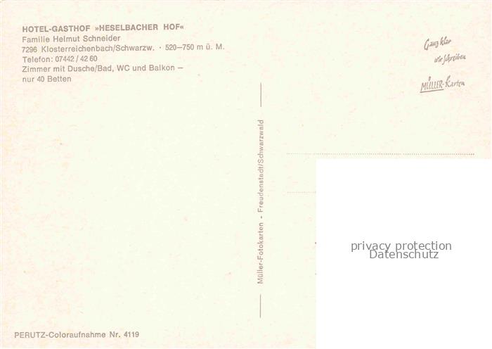 74111013 Klosterreichenbach Baiersbronn BW Hotel Heselbacher Hof Terrasse postalisch nicht gelaufen Erhaltung siehe scans [WerneD78] Wern Katcode 11110008237004