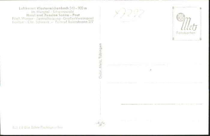 40760499 Klosterreichenbach Baiersbronn BW Hotel Pension Sonne Post postalisch nicht gelaufen Alte Ansichtskarte Postkarte Katcode 11110008237004