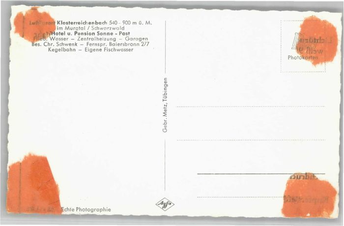 40765702 Klosterreichenbach Baiersbronn BW Pension Sonne postalisch nicht gelaufen Alte Ansichtskarte Postkarte Katcode 11110008237004