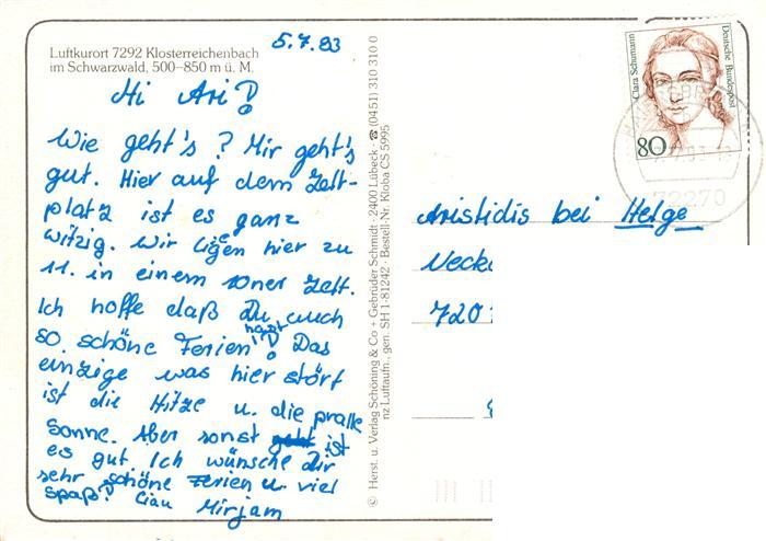 73885942 alte Postkarte Klosterreichenbach Fliegeraufnahme postalisch gelaufen Erhaltung siehe scans [WerneD78] KatCode: 11110008237004