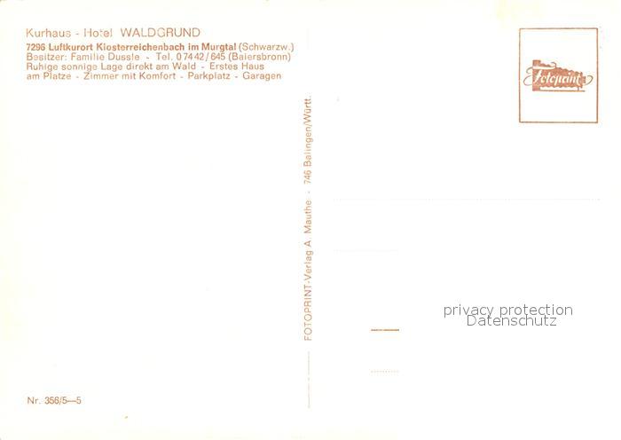 72965586 Klosterreichenbach Kurhaus Hotel Waldgrund Luftkurort im Murgtal postalisch nicht gelaufen Erhaltung siehe scans [FriedD77] KatCode: 11110008237004