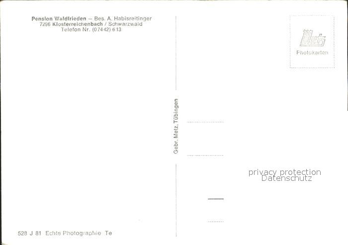 72196217 Klosterreichenbach Pension Waldfrieden postalisch nicht gelaufen Erhaltung siehe scans KatCode: 11110008237004