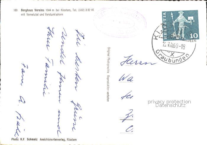 11658795 alte Postkarte Klosters GR Berghaus Vereina postalisch gelaufen Erhaltung siehe scans KatCode: 11470100350374