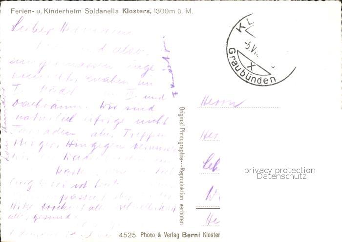 11837223 alte Postkarte Klosters GR Ferien- Kinderheim Soldanella postalisch gelaufen Erhaltung siehe scans KatCode: 11470100350374