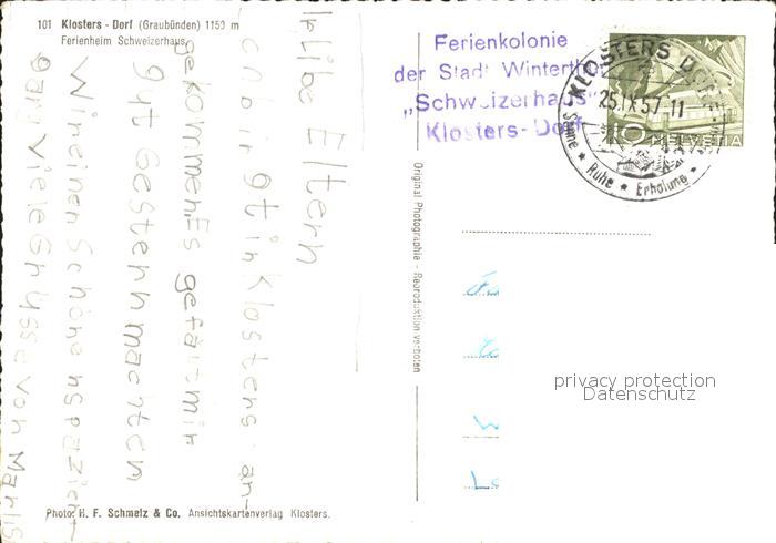 11647777 alte Postkarte Klosters GR Ferienheim Schweizerhaus postalisch gelaufen Erhaltung siehe scans KatCode: 11470100350374