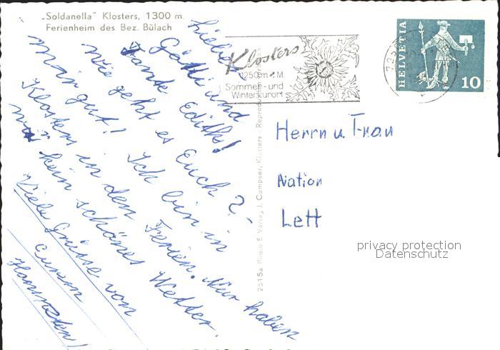 11635734 alte Postkarte Klosters GR Ferienheim Soldanella postalisch gelaufen Erhaltung siehe scans KatCode: 11470100350374