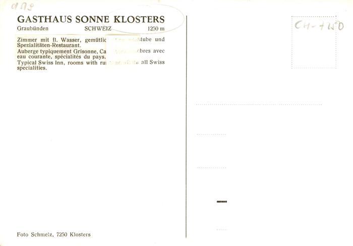 13887595 Klosters GR Gasthaus Sonne Dorfstrasse postalisch nicht gelaufen Erhaltung siehe scans [FriedD77] KatCode: 11470100350374