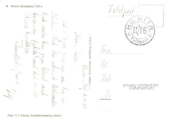 13794273 alte Postkarte Klosters GR Gesamtansicht Feldpost postalisch gelaufen Feldpost – Stempel Erhaltung siehe scans [LiesaD40] KatCode: 11470100350374