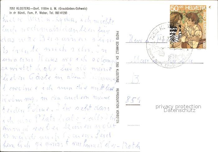 11658906 alte Postkarte Klosters GR In der Buendi postalisch gelaufen Erhaltung siehe scans KatCode: 11470100350374