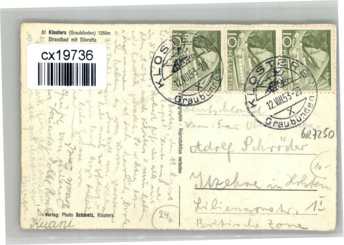 10738055 alte Postkarte Klosters GR Klosters Strandbad postalisch gelaufen KatCode: 11470100350374