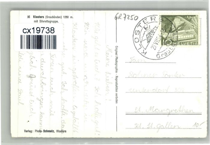 10738057 alte Postkarte Klosters GR Klosters postalisch gelaufen KatCode: 11470100350374