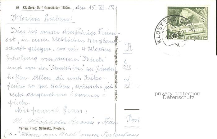 11658907 alte Postkarte Klosters GR Panorama postalisch gelaufen Erhaltung siehe scans KatCode: 11470100350374