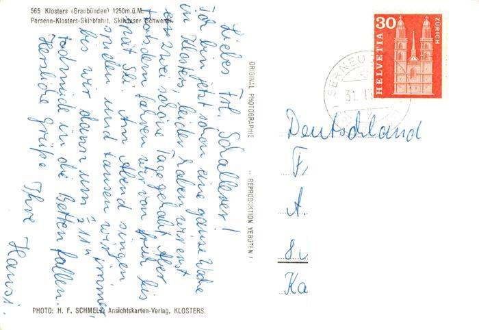 13908653 alte Postkarte Klosters GR Skihaeuser Schwendi postalisch gelaufen Erhaltung siehe scans [WerneD78] KatCode: 11470100350374