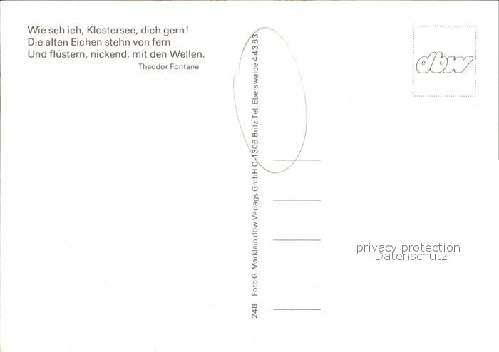 72311402 Klostersee Holstein Fliegeraufnahme mit Gedicht von Theodor Fontane postalisch nicht gelaufen Erhaltung siehe scans KatCode: 11110001055016